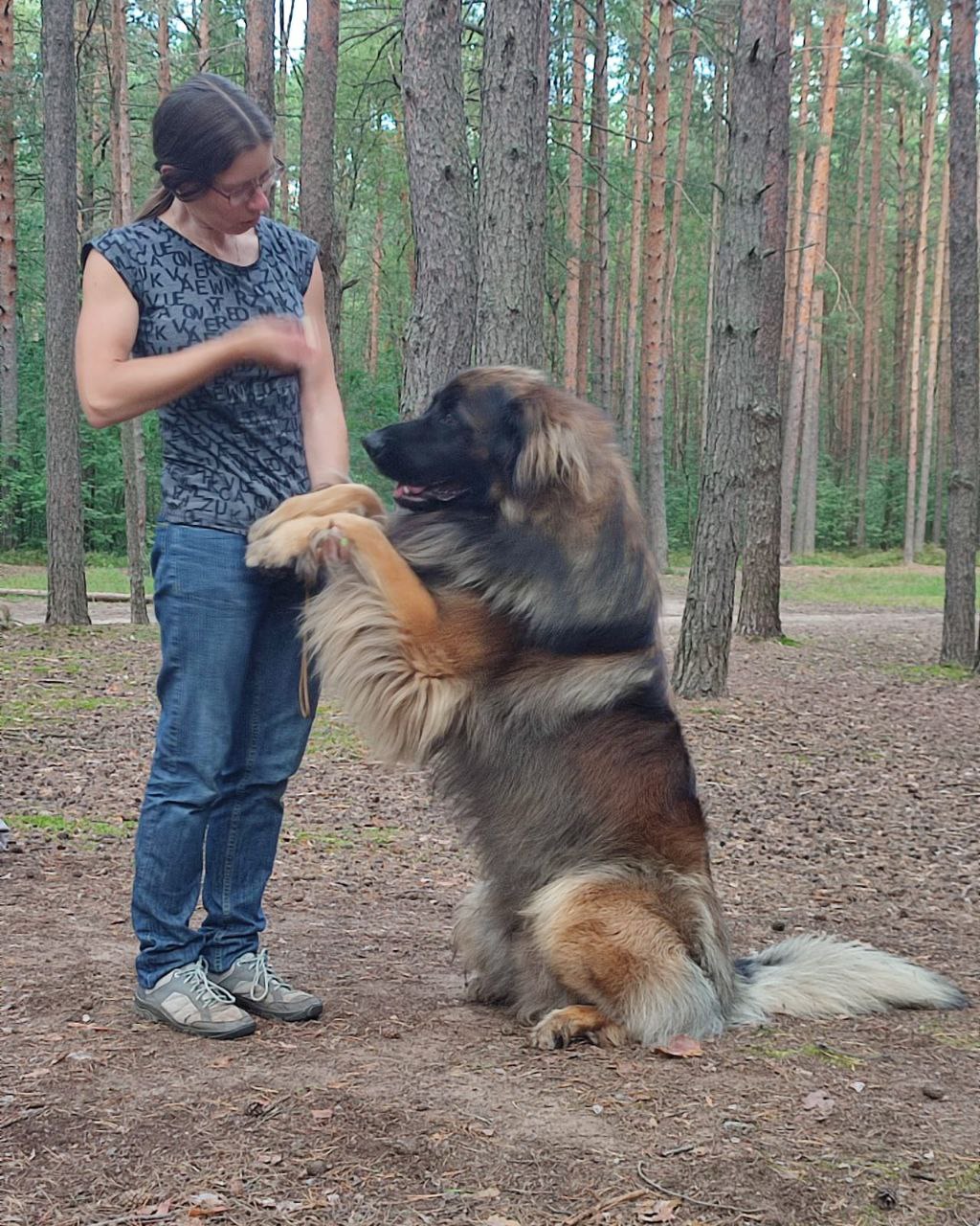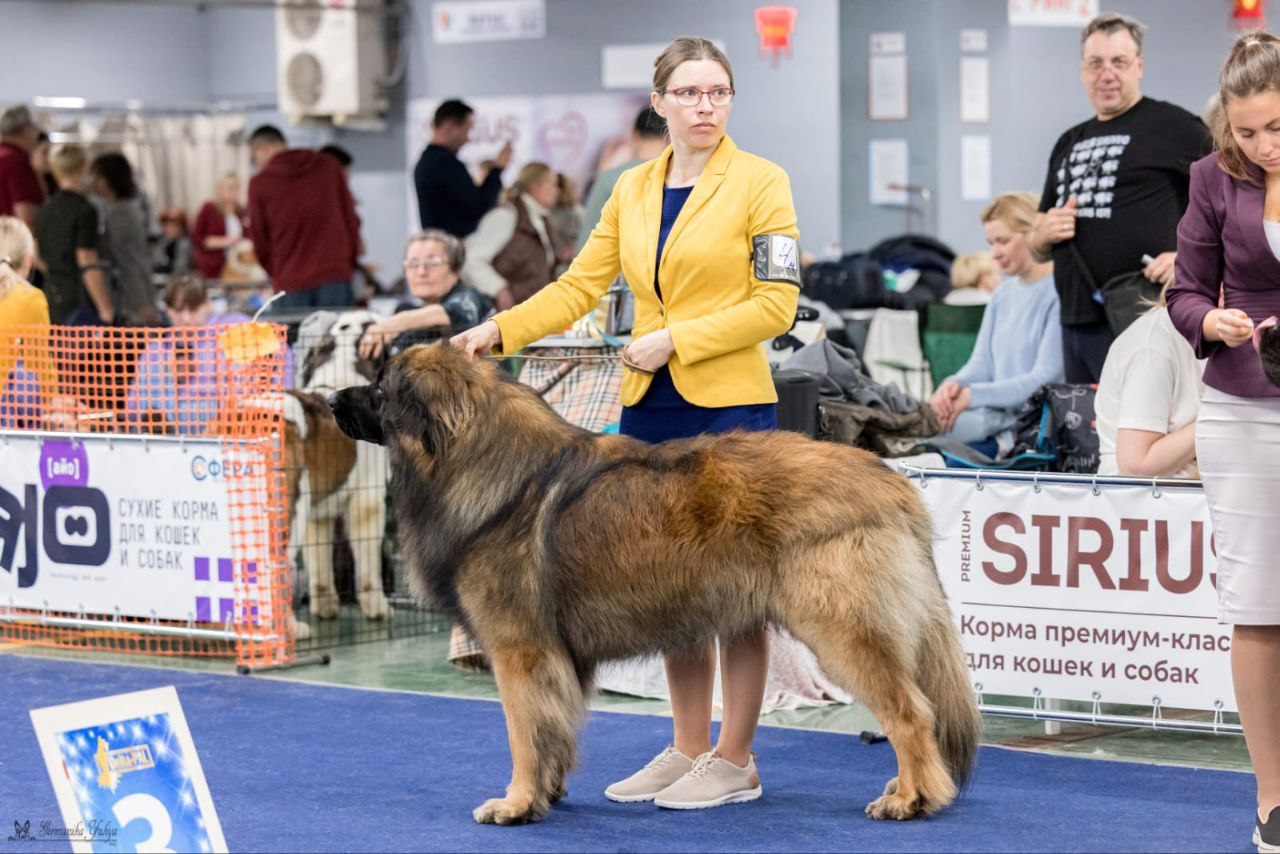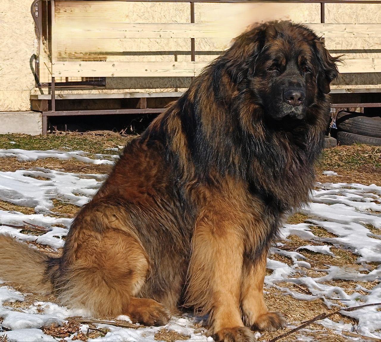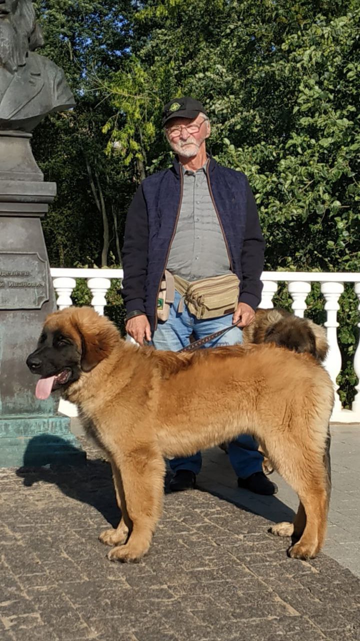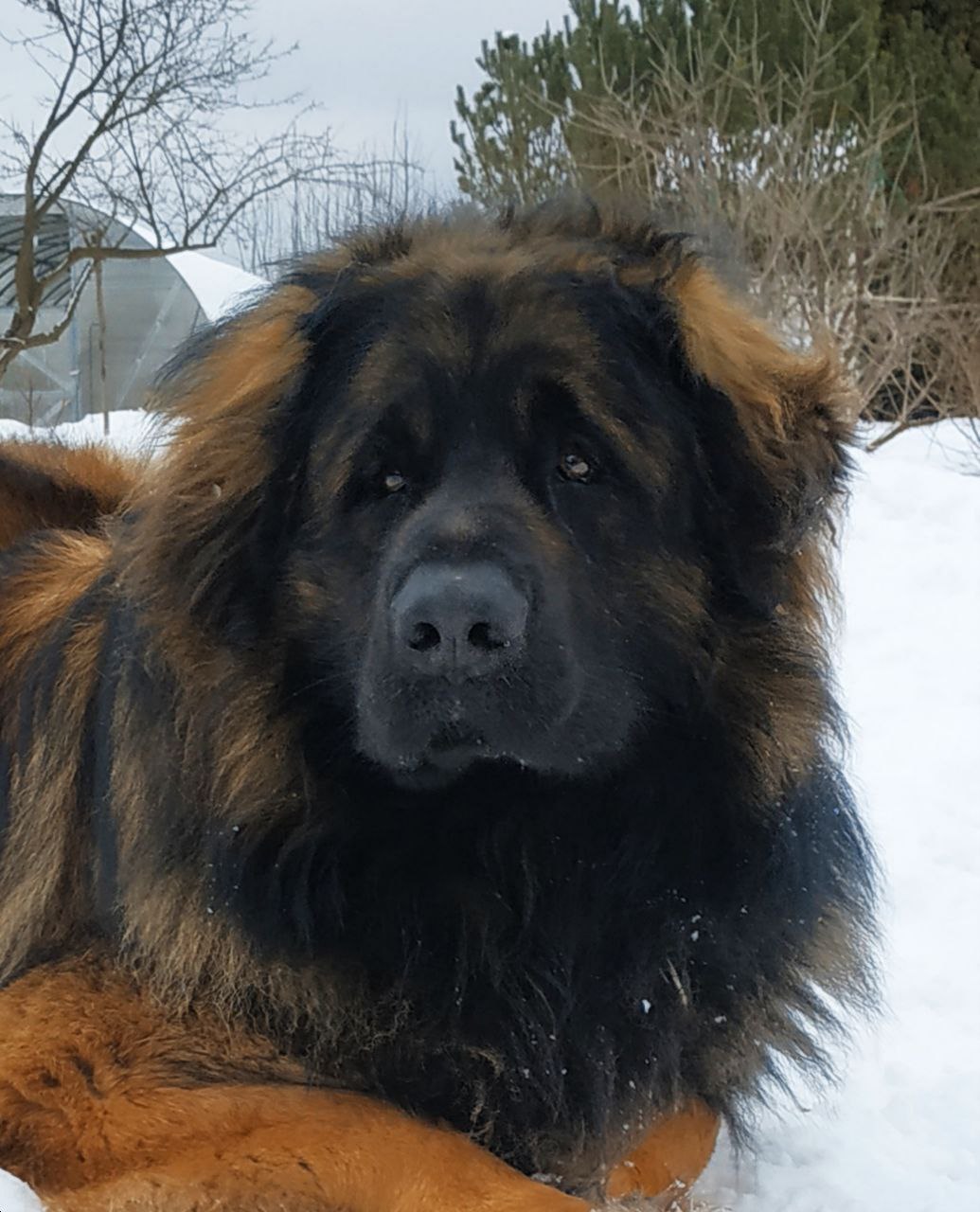 Мощный и царственный красавец с роскошной львиной гривой, богатой окраской с глубокими оттенками черного, исполненный достоинства и силы, но при этом удивительно деликатный, теплый и невероятно обаятельный представитель породы леонбергер.