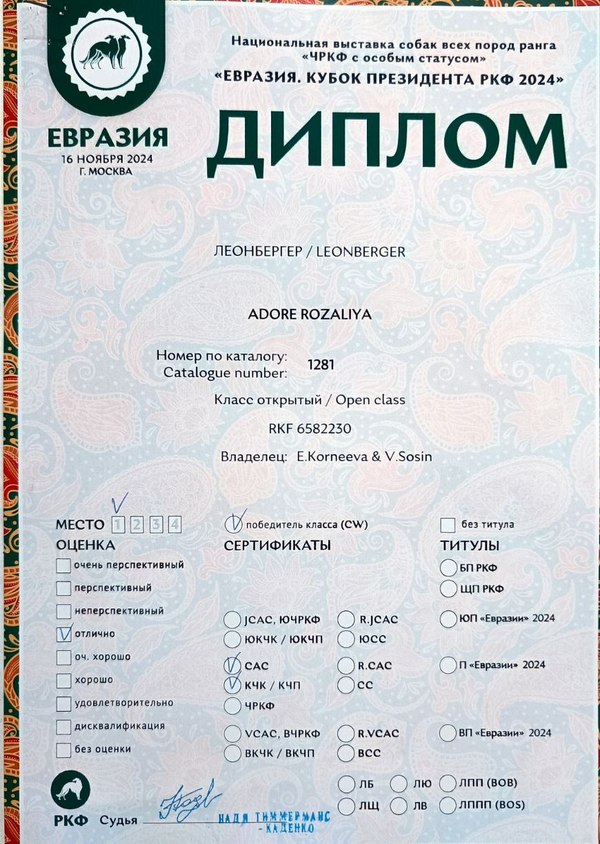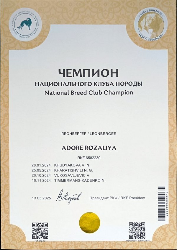 Розалия – настоящая леди своего семейства, восхитительный леонбергер 3х лет нашего разведения (от Эльбруса и Павлы. Ее изящная походка и плавные движения наполняют пространство особой магией грациозности. Нежная и ласковая, она источает теплую энергию, согревающую каждого вокруг. Она сочетает природную доброжелательность с глубокой любовью ко всему окружающему миру, одаривая тех, кого любит, вниманием и теплом души.